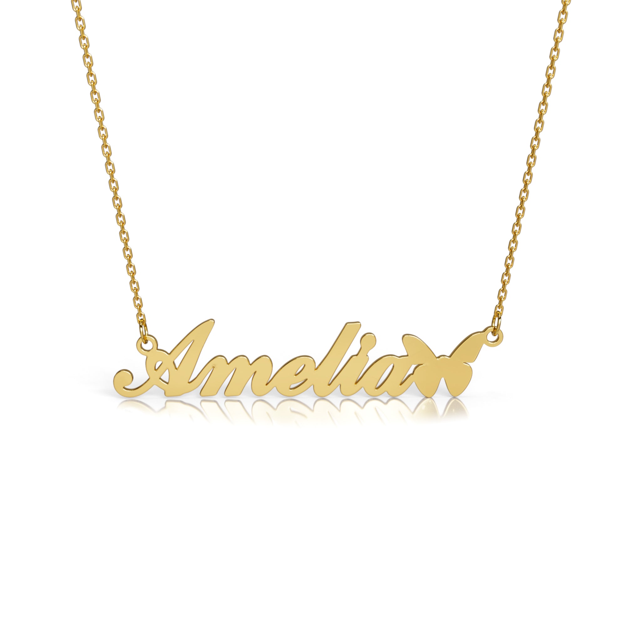 This butterfly name necklace is a graceful personalized piece that adds a touch of elegance to any look. Customizable with your choice of name or word, the delicate butterfly design symbolizes transformation and beauty.