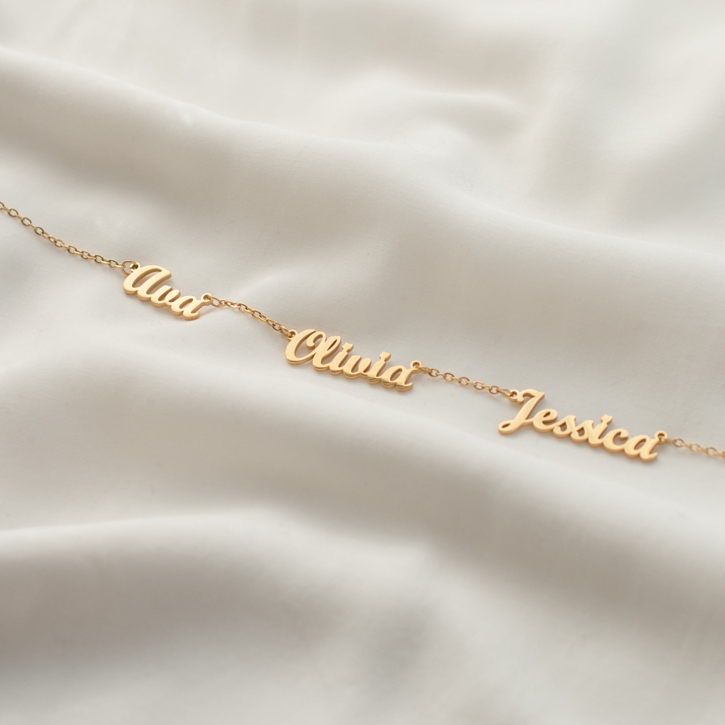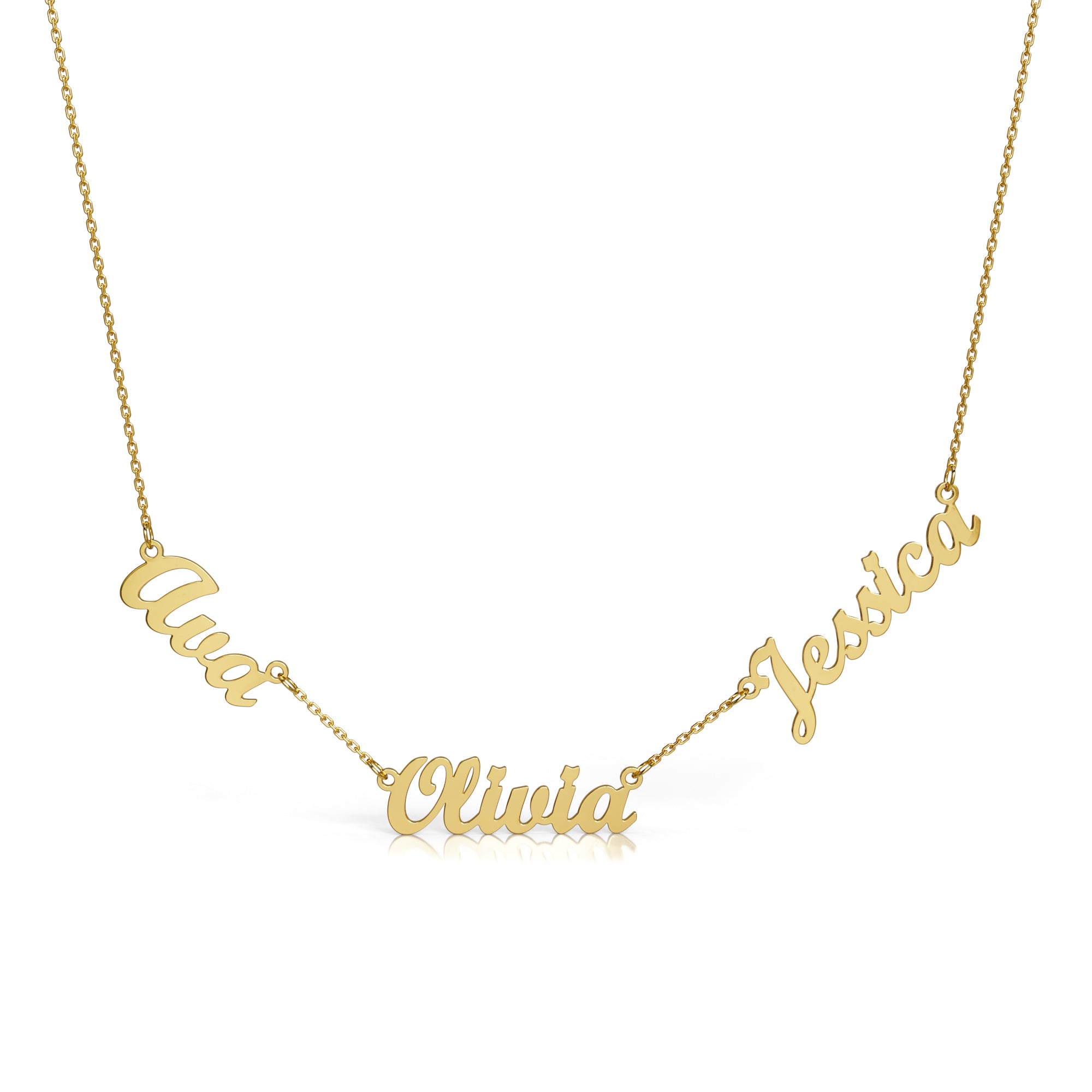 Celebrate the names that matter most with our Cursive Multiple Name Necklace—a beautifully crafted, personalized piece that combines elegance with sentimental value. Featuring a flowing cursive script, this necklace is the perfect way to honor family, friends by displaying up to four names in a delicate, handwritten style.
