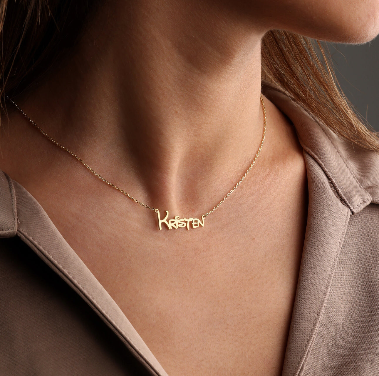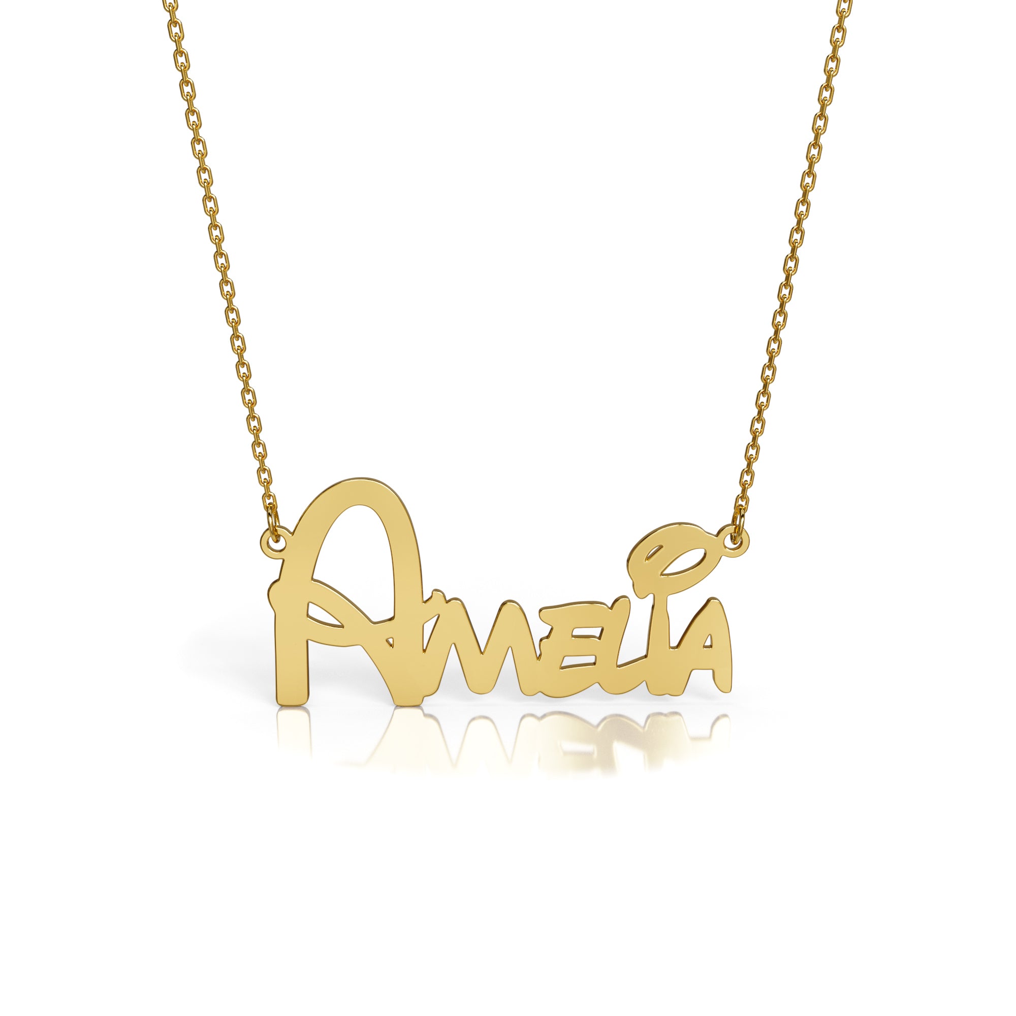 Add a touch of magic to your style with our Disney Font Name Necklace. Featuring your name in a playful, iconic Disney-inspired font, this fun and customizable piece brings a whimsical twist to personalized jewelry. A charming gift for Disney lovers of all ages!