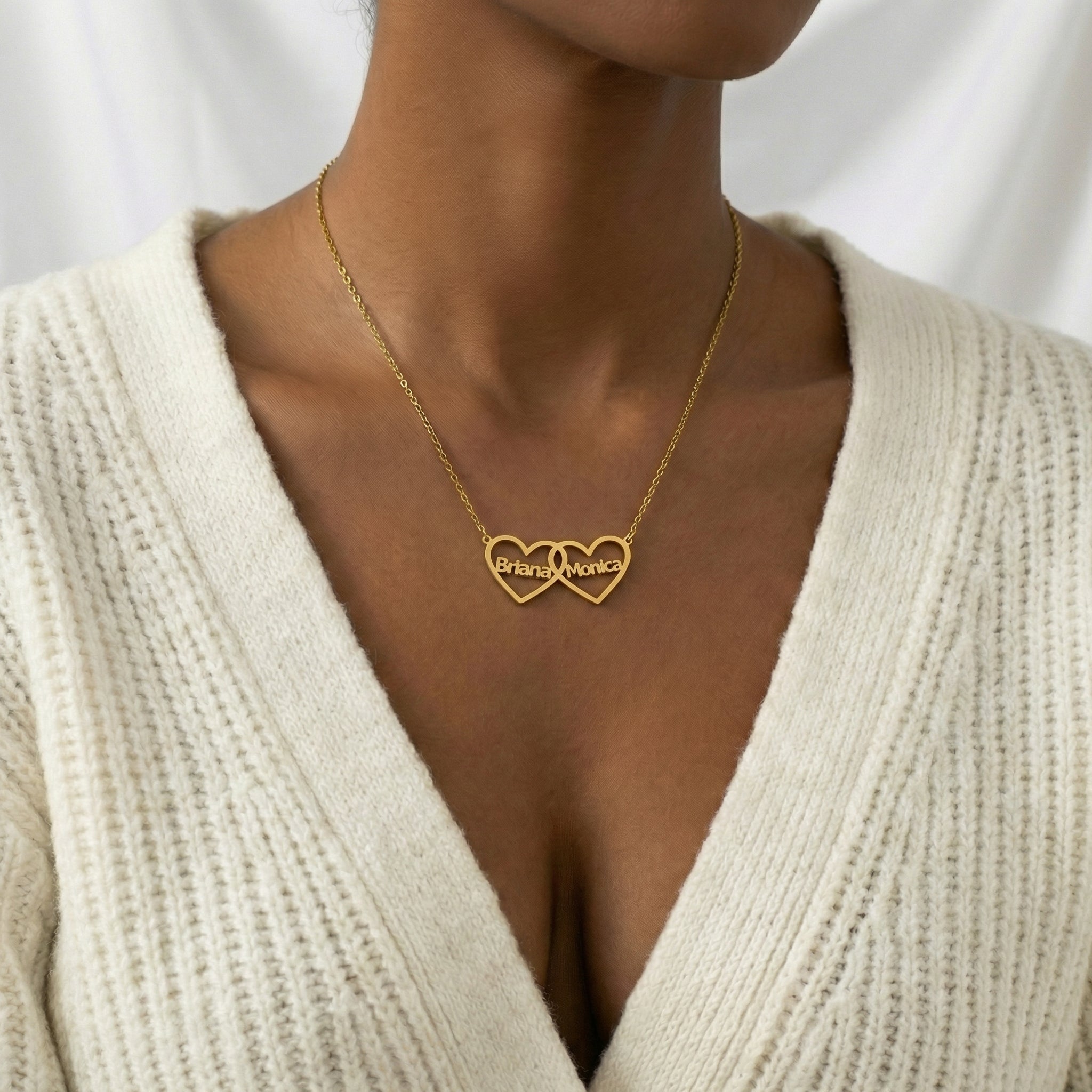 This double heart personalized necklace is a sweet and meaningful way to celebrate love and connection. Featuring two intertwined hearts that can be engraved with names or initials, it’s a thoughtful and custom piece that’s perfect for couples, family, or close friends.